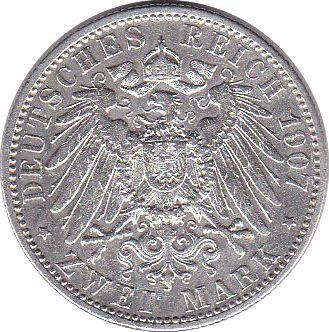 J. 174 Württemberg Wilhelm Il. 2 Mark 1907